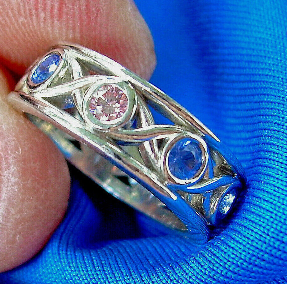 RARE NATURAL COLOR PINK DIAMONDS SAPPHIRE RING.