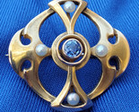 - Earth mined Sapphire Deco Brooch 14k Gold Antique Geometric Gatsby Flapper era