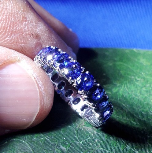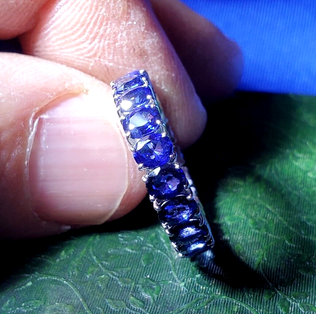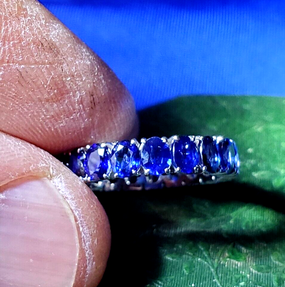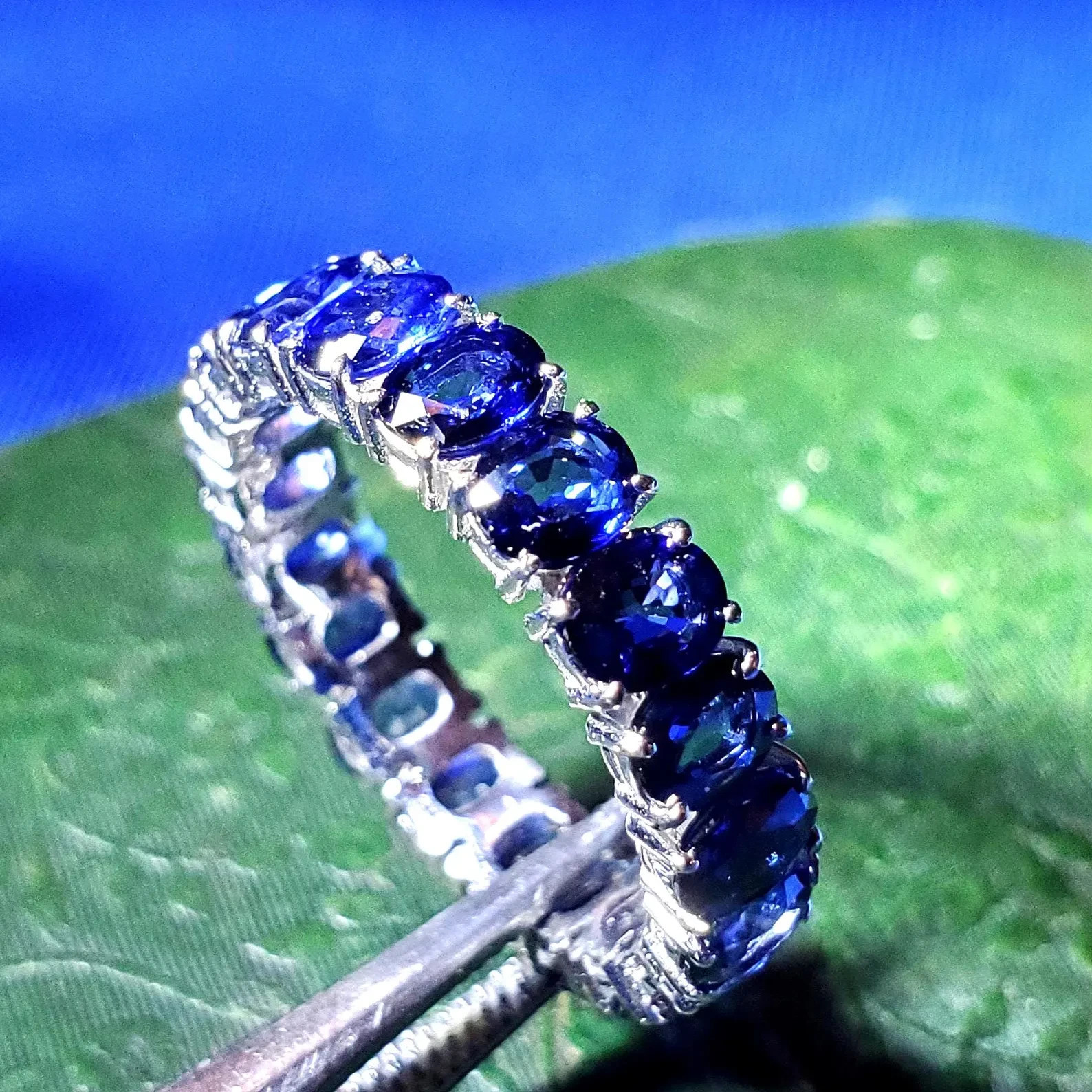 GENUINE EARTH-MINED SAPPHIRE 14K WHITE GOLD ETERNITY BAND.