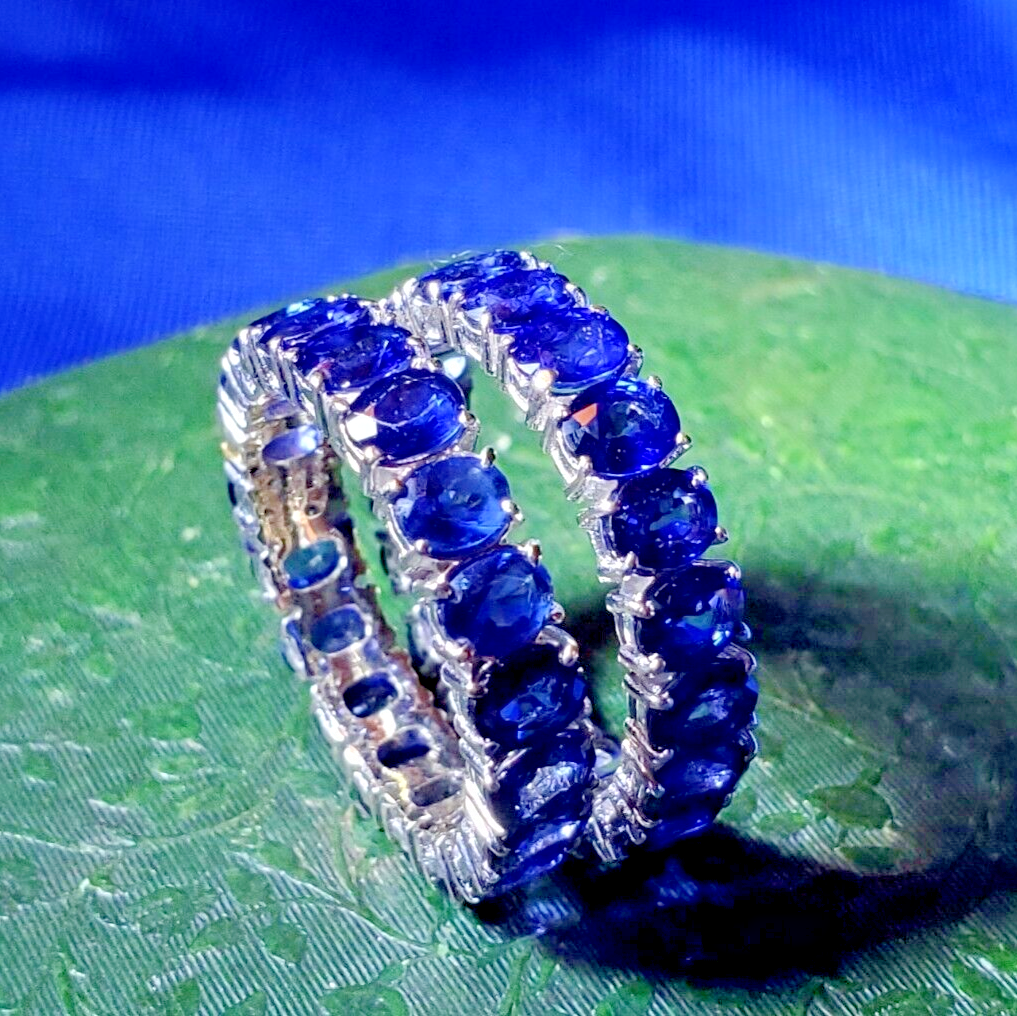 - Earth mined Sapphire Deco Wedding Band Set of 2 Eternity Anniversary Bridal Ring