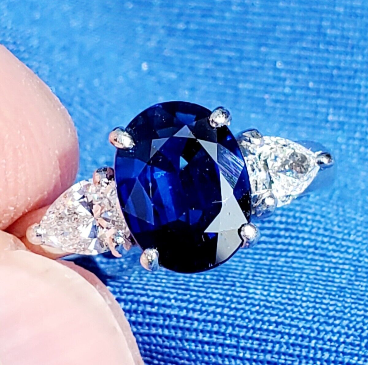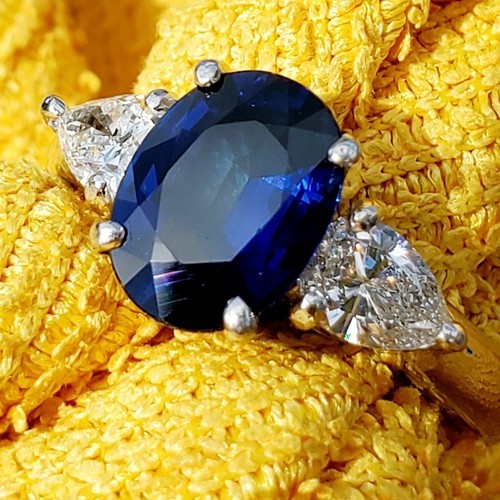 ROYAL BLUE SAPPHIRE DIAMOND PLATINUM GATSBY STYLE SOLITAIRE.