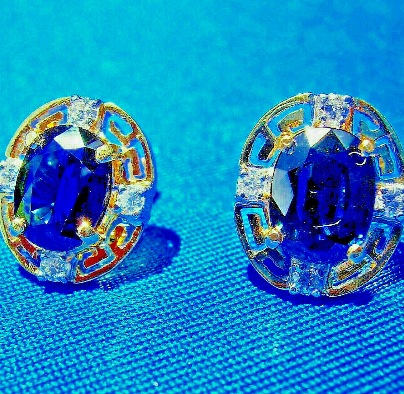 EARTH-MINED NATURAL SAPPHIRE DIAMOND STATEMENT EARRINGS 14K GOLD.