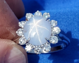 - Earth mined Star Sapphire Diamond Deco Engagement Ring Diana Style Solitaire
