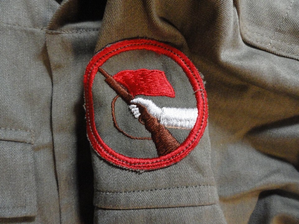 East German, issue female WOMENS summer weight jacket to the Kampfgruppen (KG) or "Battle Group" of the worker's militia. This paramilitary organization was made up of volunteers from state run facilities such as farming, teaching and industrial works, outside the regular army, that would be called to assist in the defense of the" Motherland" if invasion from the capitalist West ever came.