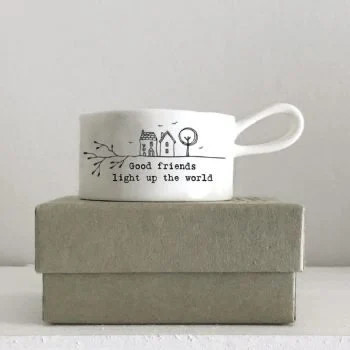 - East of India Handled "Good Friends" Porcelain Tea Light Holder