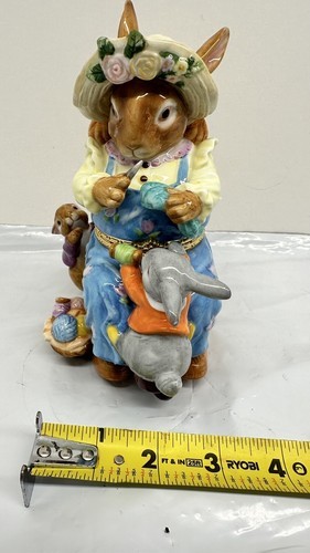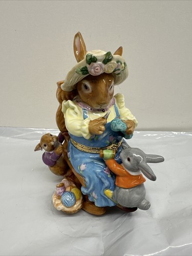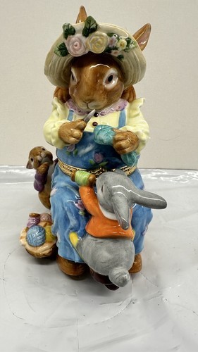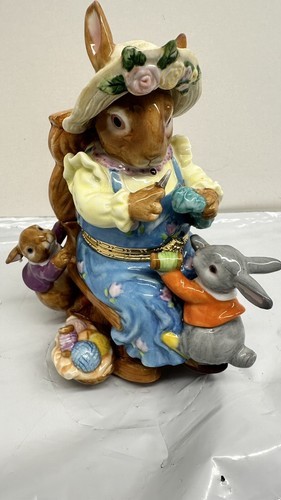 - Easter trinket box/ vintage CWC Ceramic jewerly / knitting bunny mother babies/