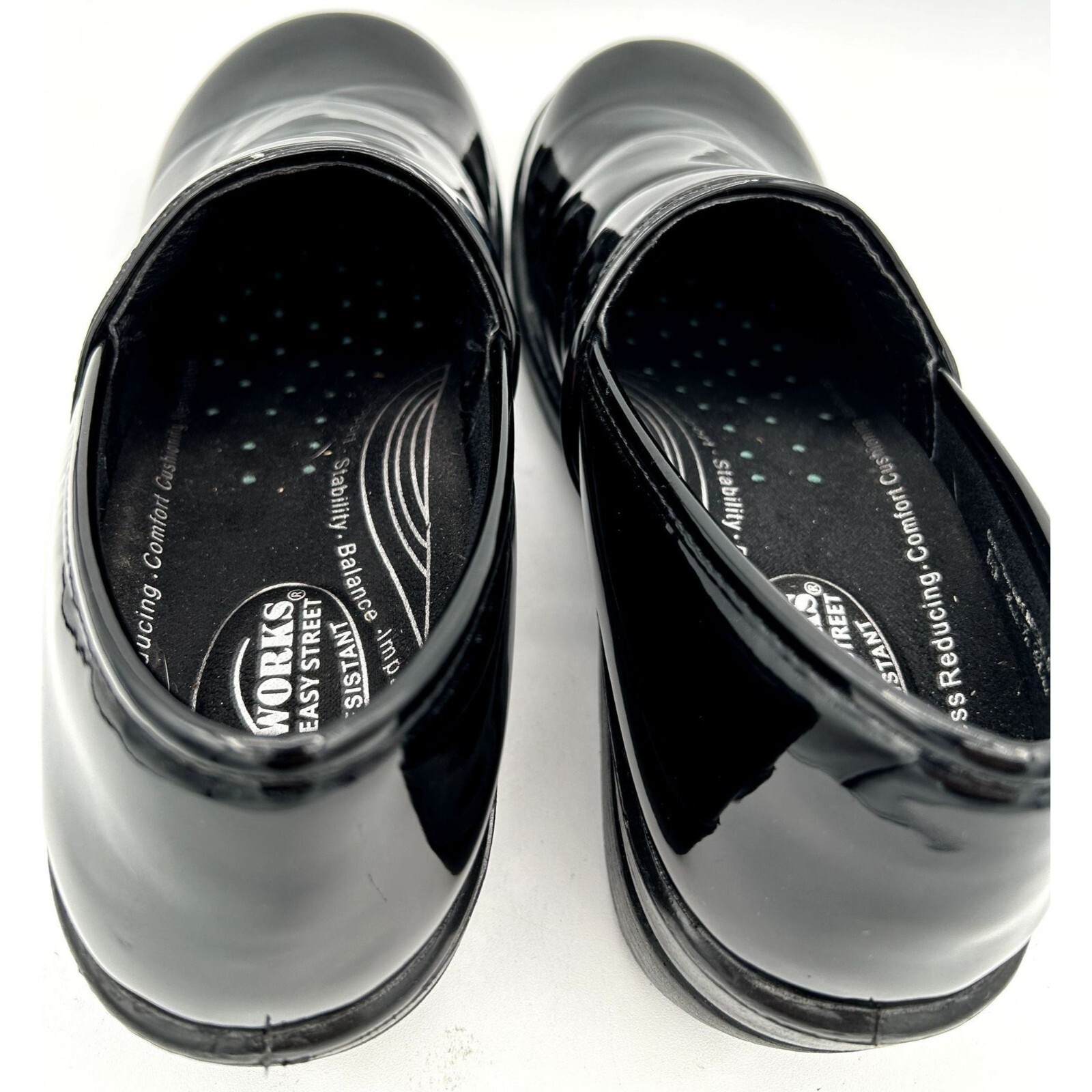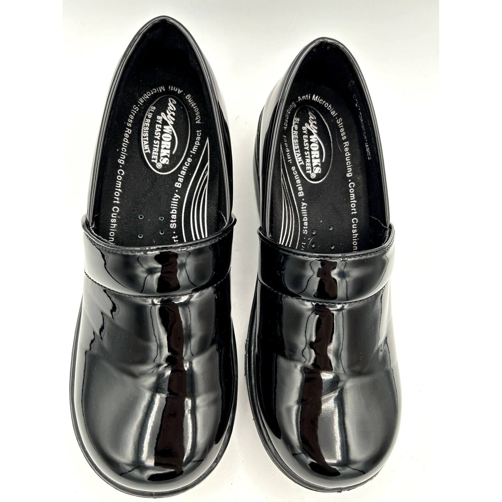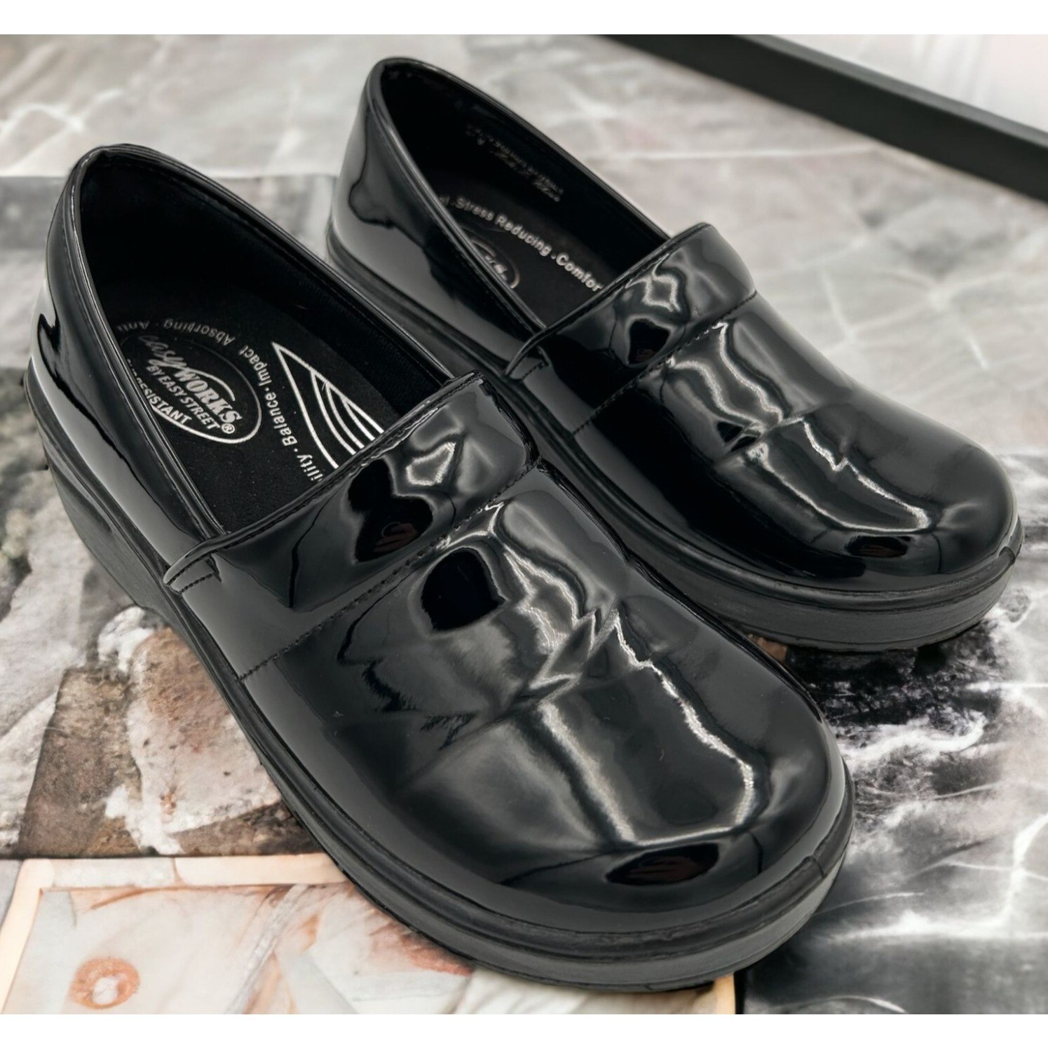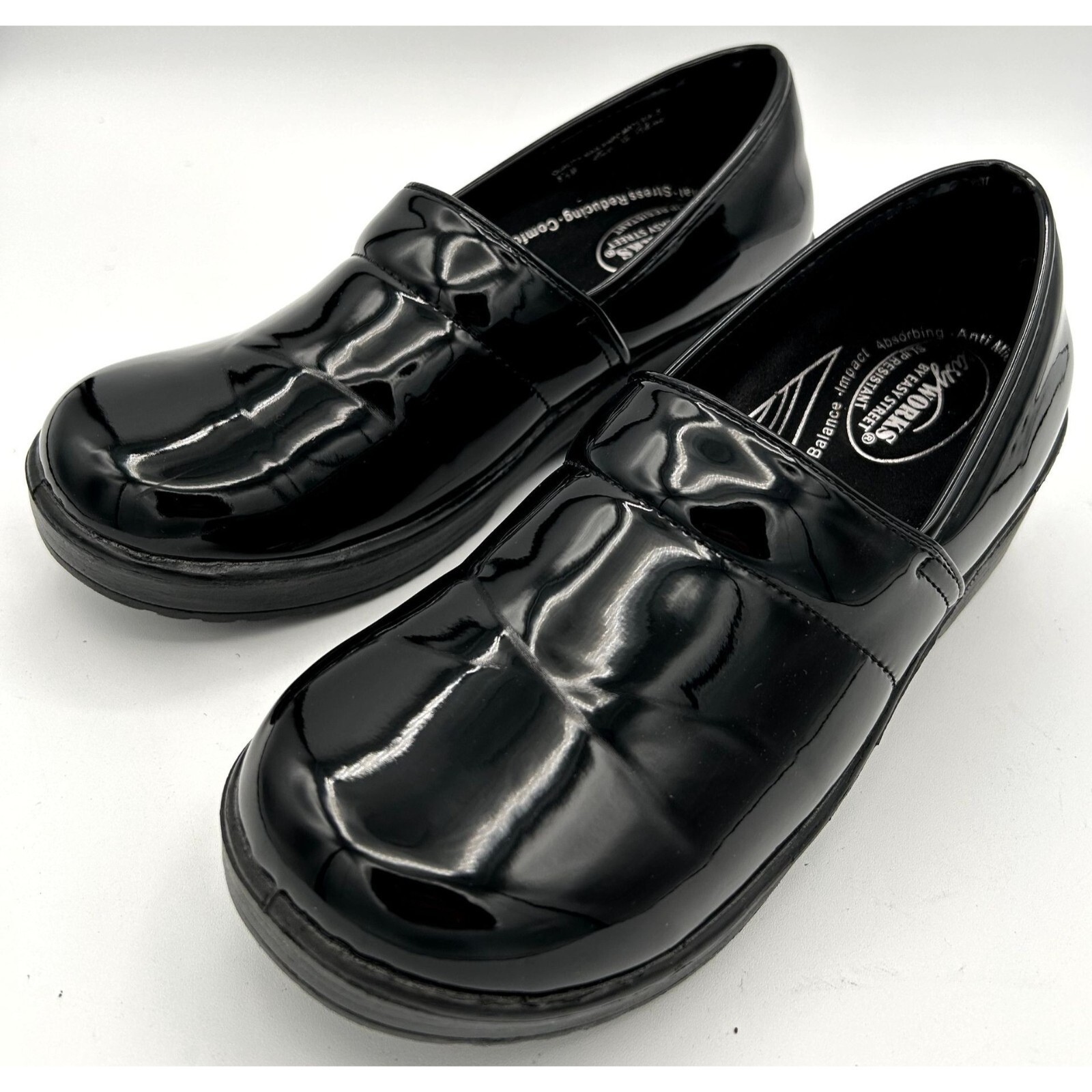 - Easy Works by Easy Street Black Patent Leather Clogs Womens 8.5M Slip Resistant