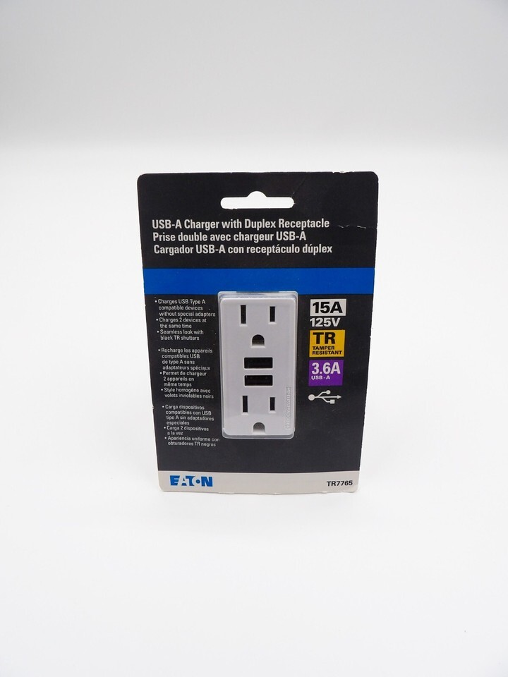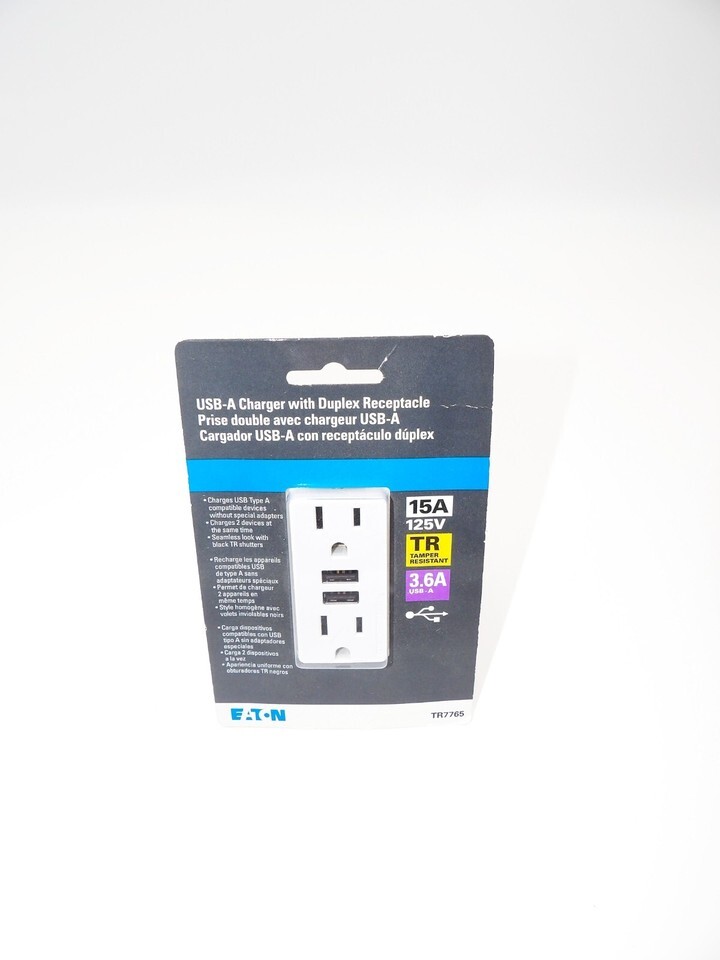 - Eaton TR7765 USB-A Charger with Duplex Receptacle ~ NEW