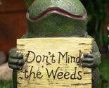 - Ebros 10" H Whimsical Green Frog Toad Holding 'Don't Mind The Weeds' Sign Statue