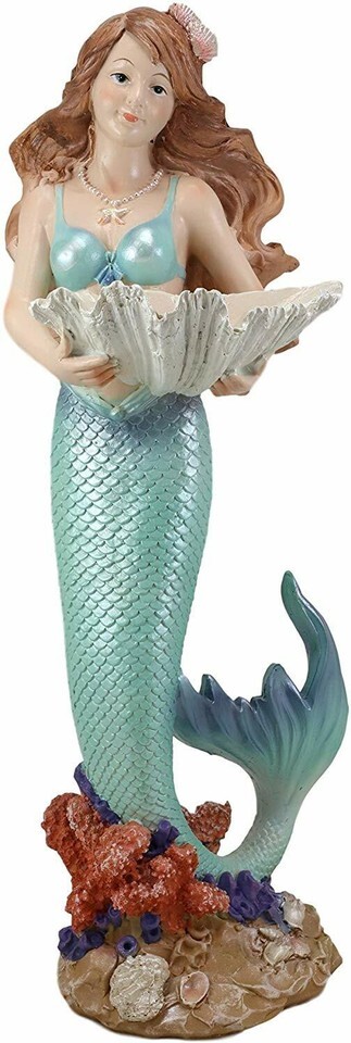 - Ebros 17" Tall Mermaid with Giant Oyster Shell Dish Votive Candle Holder Statue