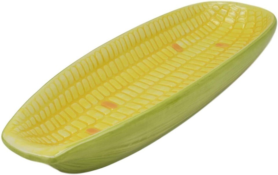 ? Here is a hearty and fun kitchen dish platter shaped and colored like a corn ear! The inner walls of the platter is textured like an actual corn! It is perfect for serving corn dishes, butter, and many more!