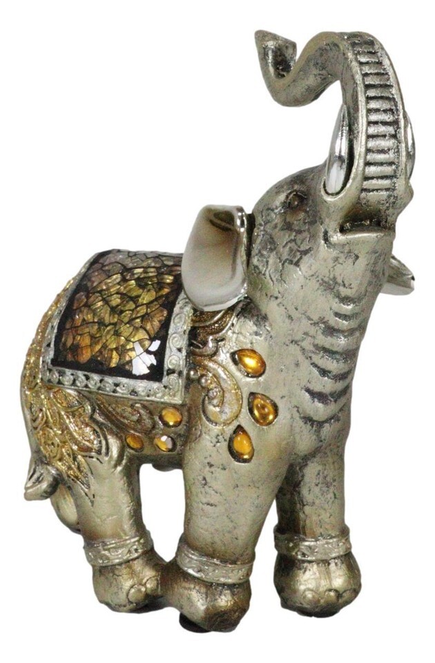 ? This sculpture features a beautifully decorated elephant with its trunk up . Elephants are considered a symbol of good luck for many reasons, most of them tracing their origin to ancient folklore, as well as Indian and Buddhist religions and mythologies. For this specific feng shui application, always have the elephants with the trunk up, which allows the lucky energy to be dispersed throughout your home or office.