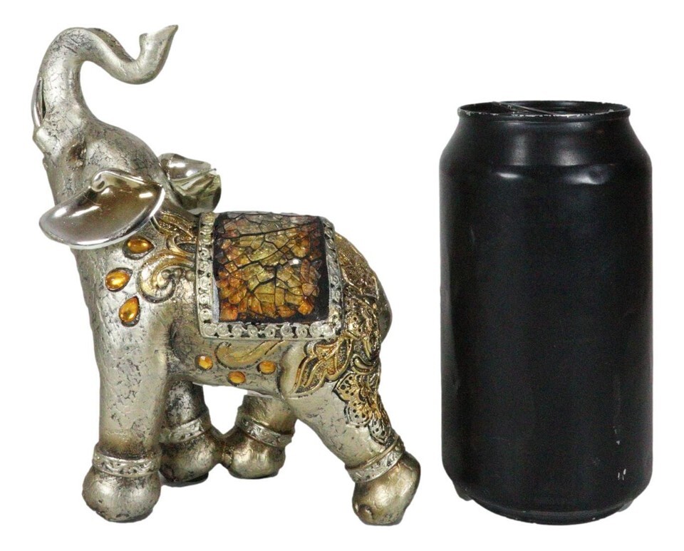 - Ebros Bejeweled Mosaic Right Facing Feng Shui Elephant With Trunk Up Statue 6"H