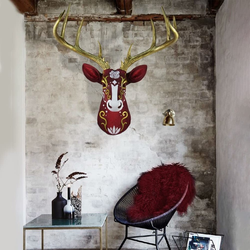? Deer lovers hunters and taxidermy fans a like rejoice with the "Sweet Rose Red" decorative faux taxidermy mountable deer head. Inspired by our love of the Rose Parade and deer's because why not? So sleep a little better knowing you can display the art without harming any animals.