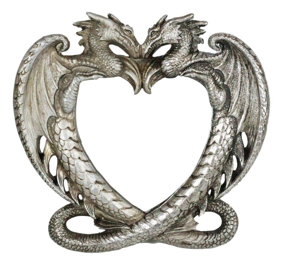 ? Born of brimstone and fire when the world was but a dream of the old gods. Destiny has compelled them to take flight, and seek out their one true eternal mate. A mystical symbol of love. This beautiful heart shaped dragon mirror can be free standing or hung upon a wall in your home.