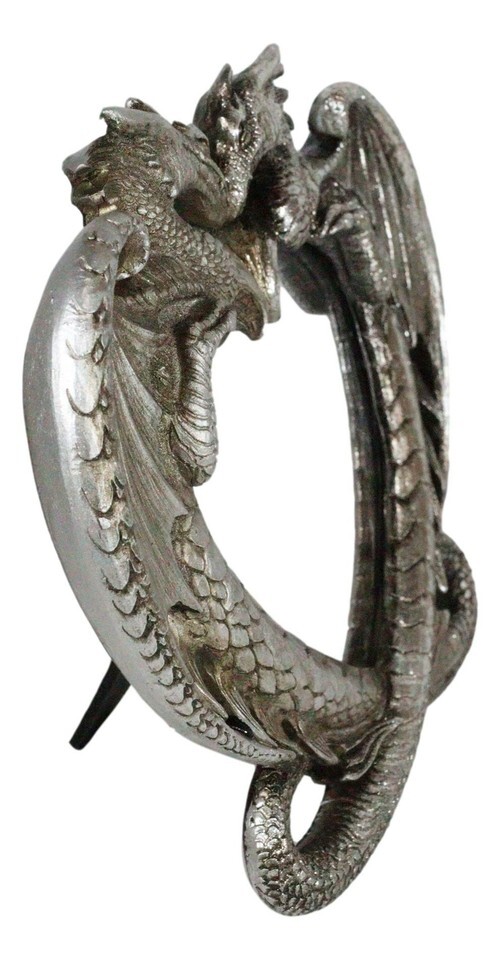 ? This Guardian Twin Dragons Heart Mirror Figurine is made of high quality polyresin, individually hand crafted and painted in antiqued silver finish. Color tone may vary from picture.