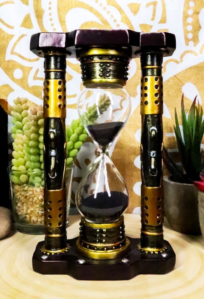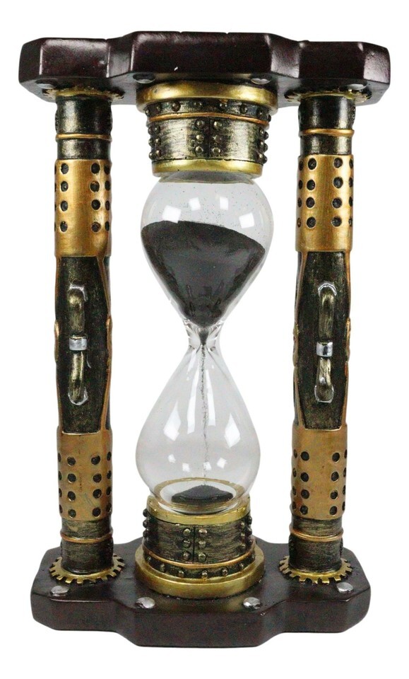 ? Keep the time until your next great adventure with this Steampunk Sand Timer! A fun and nostalgic way to keep time, this unique sand timer makes a fantastic board game companion or home decor piece for any fan of steampunk flair.