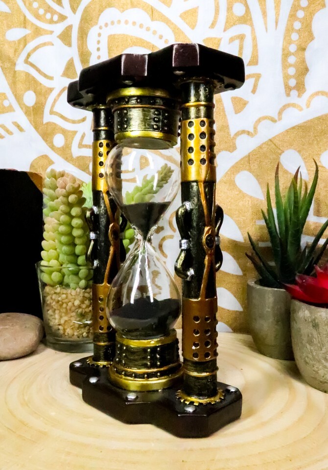 ? Gears and other eye-catching steampunk accents like studs and bolts are featured on the outer structure as well, giving the sand timer an authentic steampunk design. Great for everyday use or simply for a stunning decoration, this Steampunk Sand Timer makes a fantastic gift idea for the steampunk enthusiast in your life.