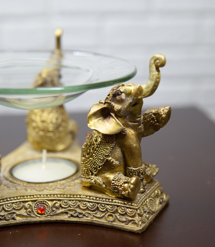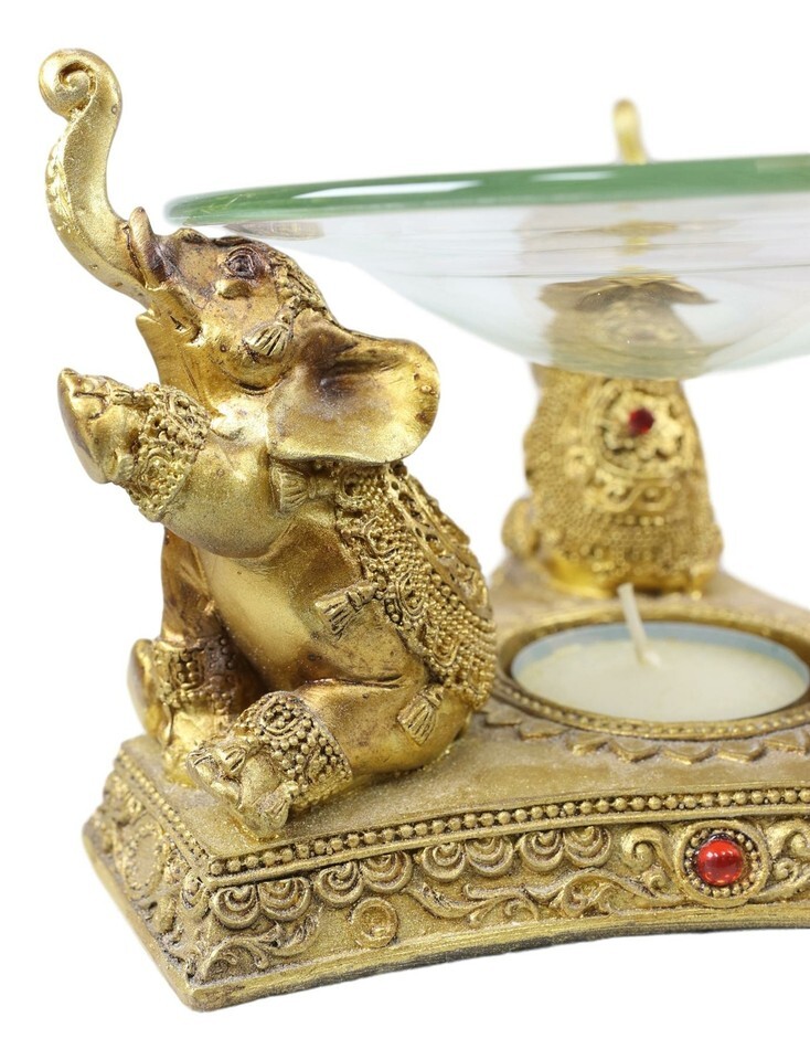 - Ebros Feng Shui Golden Thai Buddha Elephants Trumpeting Candle Oil Warmer Statue