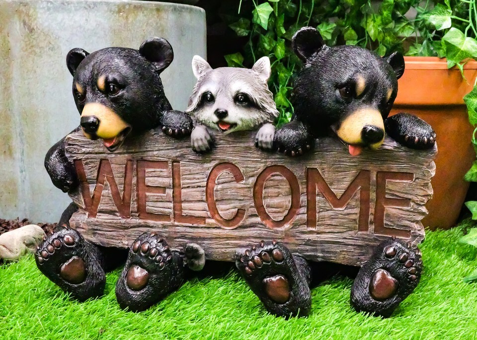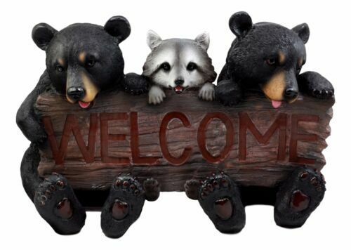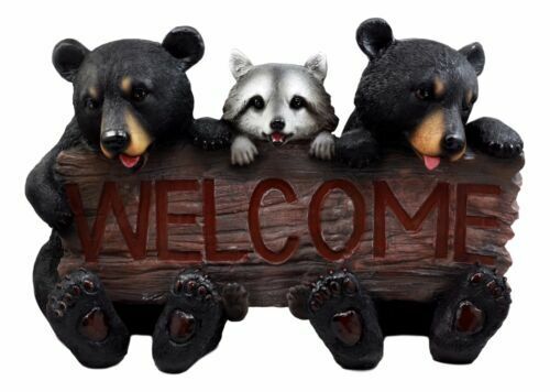 - Ebros Forest Pals Welcome Sign 2 Black Bears & Racoon Garden Greeter Statue 16"L