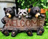 Ebros Forest Pals Welcome Sign 2 Black Bears Racoon Garden Greeter Statue 16"L