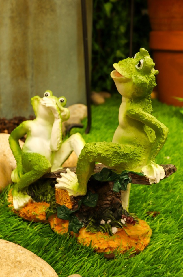 ? This Frog Friends On Seesaw Statue is made of designer composite resin, hand painted and polished.