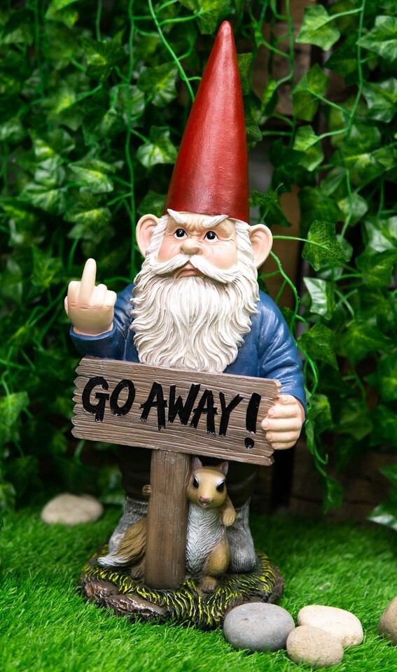 - Ebros "Go Away!" Gnome Dwarf Not Welcome Statue 17.75"H Patio Outdoor Figurine