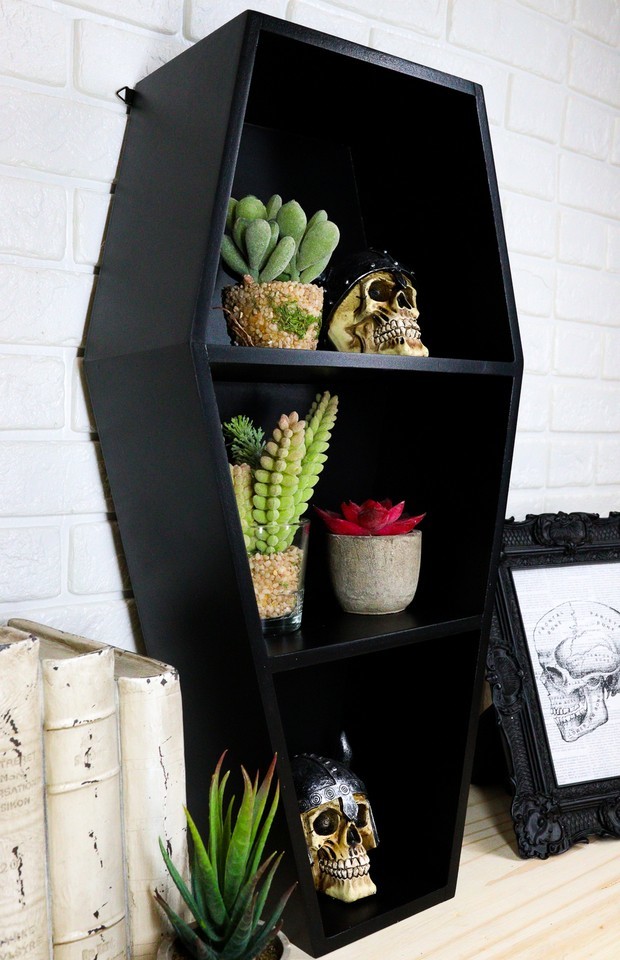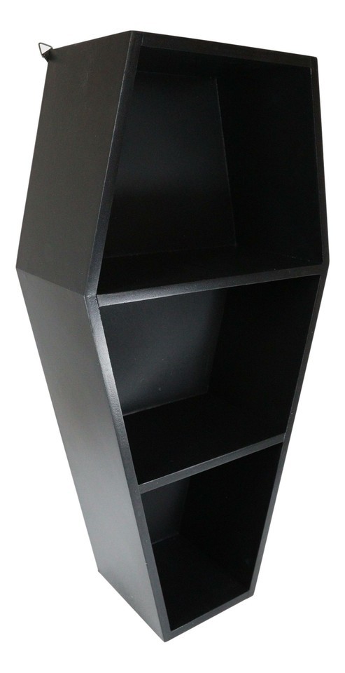 - Ebros Gothic Graveyard Light Duty Black Coffin Casket Shelving Wall Shelf 19'H