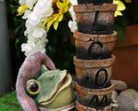 Ebros Green Frog Toad With Pink Hat Juggling Pots Stack With Welcome Sign Figurine 14"H