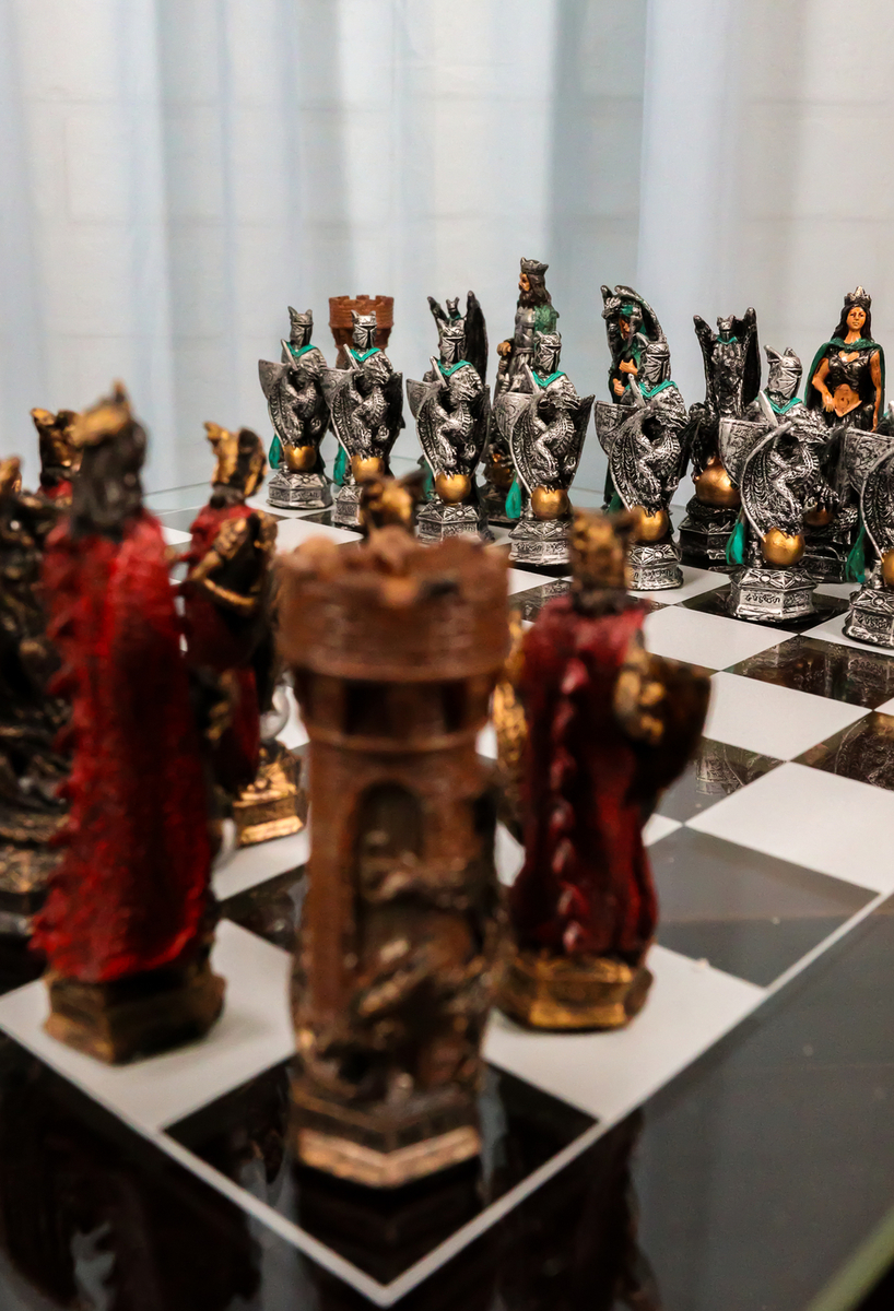 ? Please refer to our video linked to this product for a real time look! Collect all of our themed chess sets in our catalog. We carry fantasy, mythology, civil war, ancient kingdoms and other themed chess sets in our catalog.