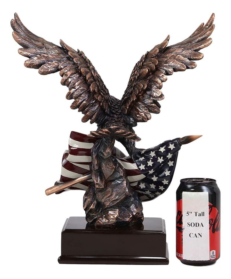 - Ebros Large 14.5" Tall Bald Eagle Perching On American Flag Figurine With Base