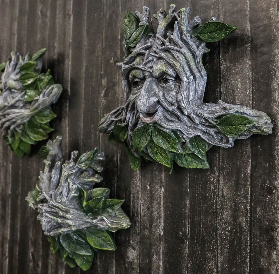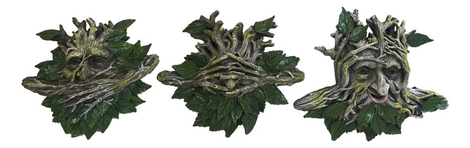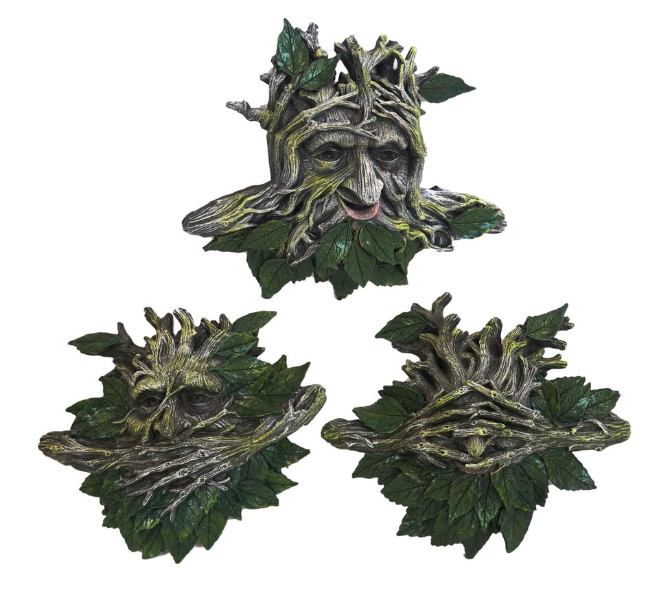 ? Show your love for ancient shepherds of the forest with these wall mounted tree spirit plaques. Their serene face is formed from intertwined leaves. His face was created by an intricate network of branches, the leaves are fresh and green. They are acting out the age-old fable of see no evil, speak no evil and hear no evil!