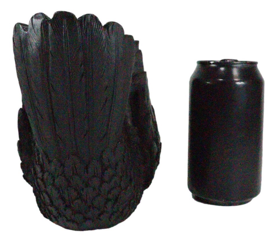 ? This Drinking Raven Sculpture does double duty as charming Oil/Wine Bottle holder! Every inch of this stunning sculpture is a tribute to the artist's craft, from the breathtaking realistic raven eyes to intricate feather sculpting of the body. This one-of-a-kind bar and kitchen accessory is certain to attract attention and admiration at your next party or family get-together!