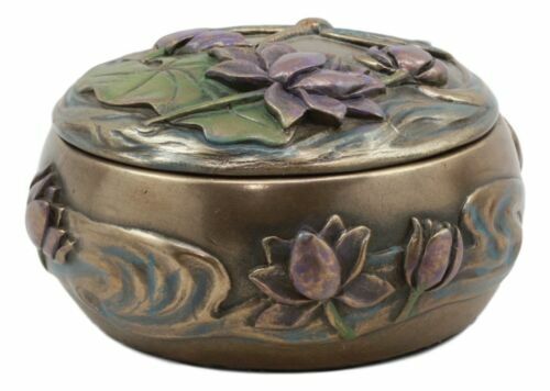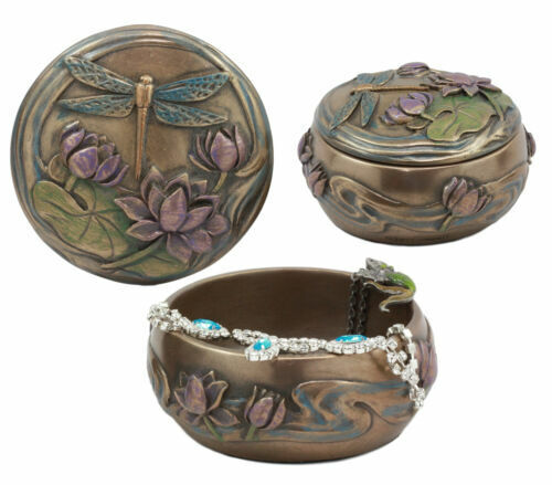 - Ebros Nouveau Dragonfly Flitting Lily Over The Pond Round Jewelry Box Figurine