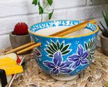 Ebros Pack Of 2 Blue Spring Flowers Ramen Noodles Soup Bowl W/ Bamboo Chopsticks