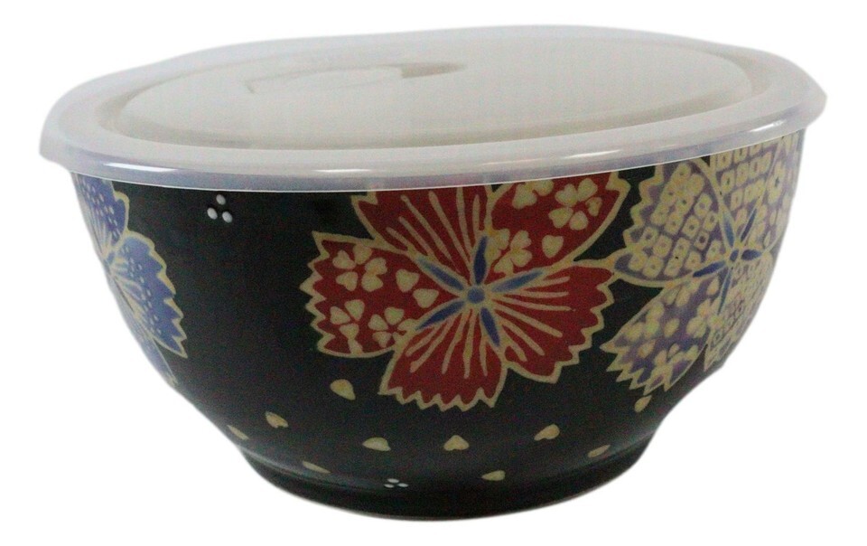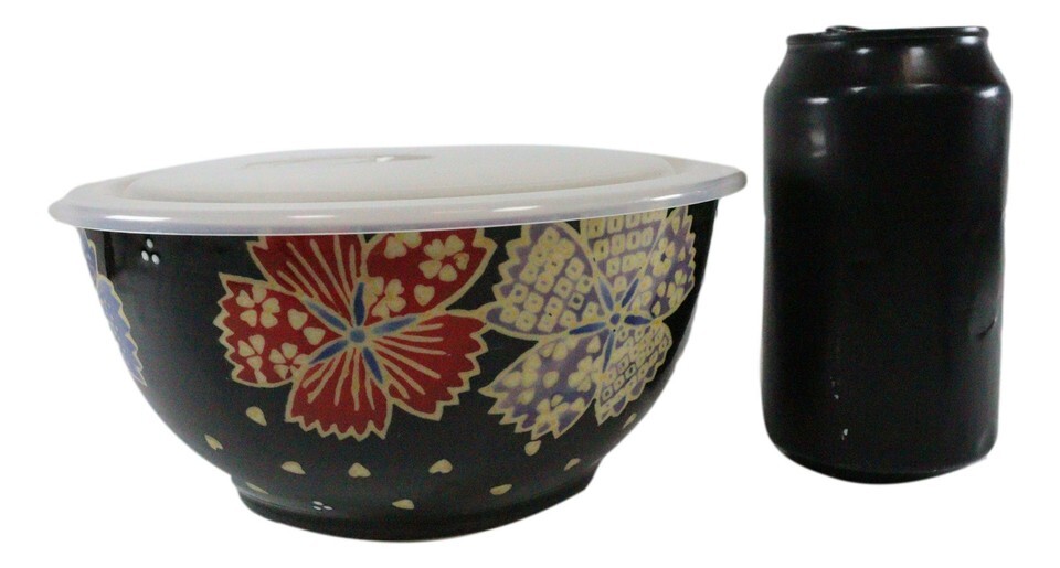 - Ebros Set of 2 Ceramic Midnight Floral Blossoms Portion Meal Bowls 3 Cups W/ Lid