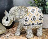 Ebros Silver Geometric Elephant Statue W/ Unique Tapestry Blanket Design 6.25" L