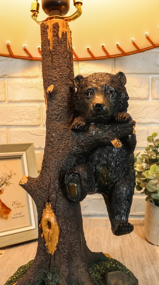- Ebros Whimsical Black Bear Hanging On Tree Branch Table Lamp with Shade 22"H