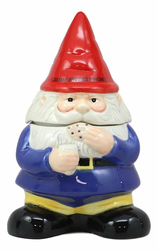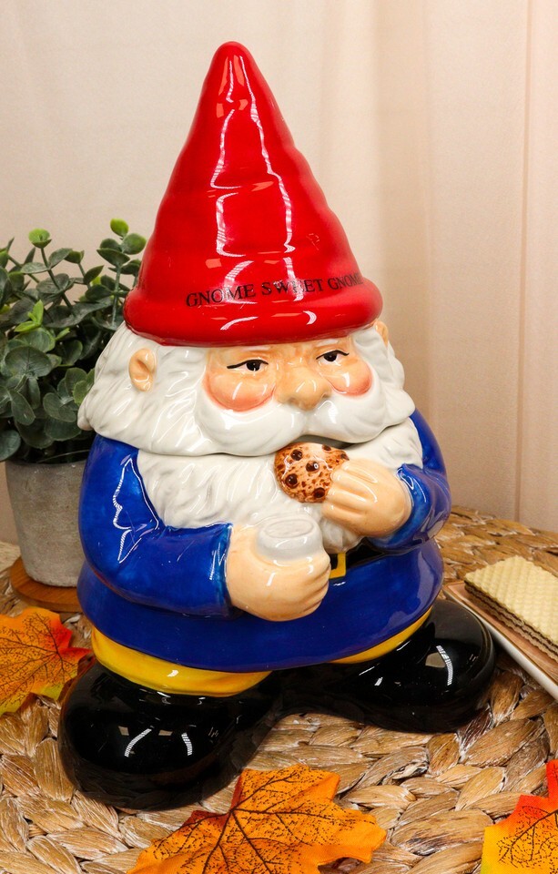 - Ebros Whimsical Sweet Tooth Gnome Ceramic Cookie Jar With Air Tight Lid 9.75"H