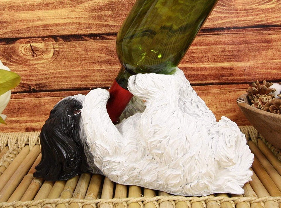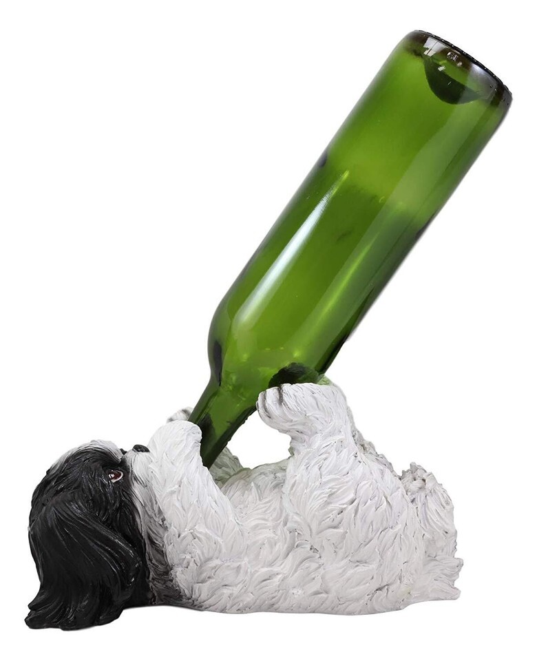 - Ebros White and Black Shih Tzu Dog Wine Bottle Holder Kitchen Wine Cellar Decor