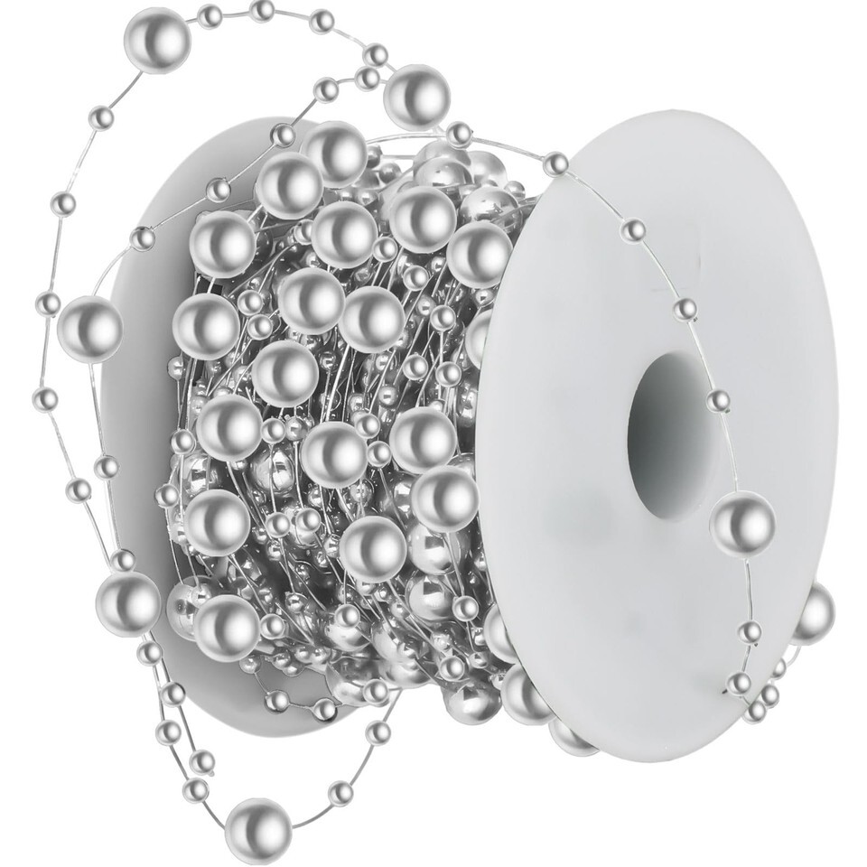 Features: Our Christmas bead garland for tree comes in a striking palette of silver colors in total, these vibrant colors not only up the festive quotient of your Christmas tree but also complement a wide range of festive decoration. The pearl Christmas tree garland is easy to wrap around your Christmas tree or other decorative items, post holidays, you can conveniently reel them back onto their rolls, ready to be safely stored until the next holiday season, preserving their quality and shine. Specifications: Material: fishing line and plastic beadsColor: silver Each roll size: about 50 feet/ 15 meter long Total size: about 250 feet long Bead diameter: 0.12 inch/ 0.3 cm and 0.2 inch/ 0.5 cmPackage includes: 5 Rolls Christmas tree beadsNotes: Manual measurement, please allow slight errors on size. The color may exist a slight difference due to different screen displays. Winding risk may exist, please keep away from little kids.