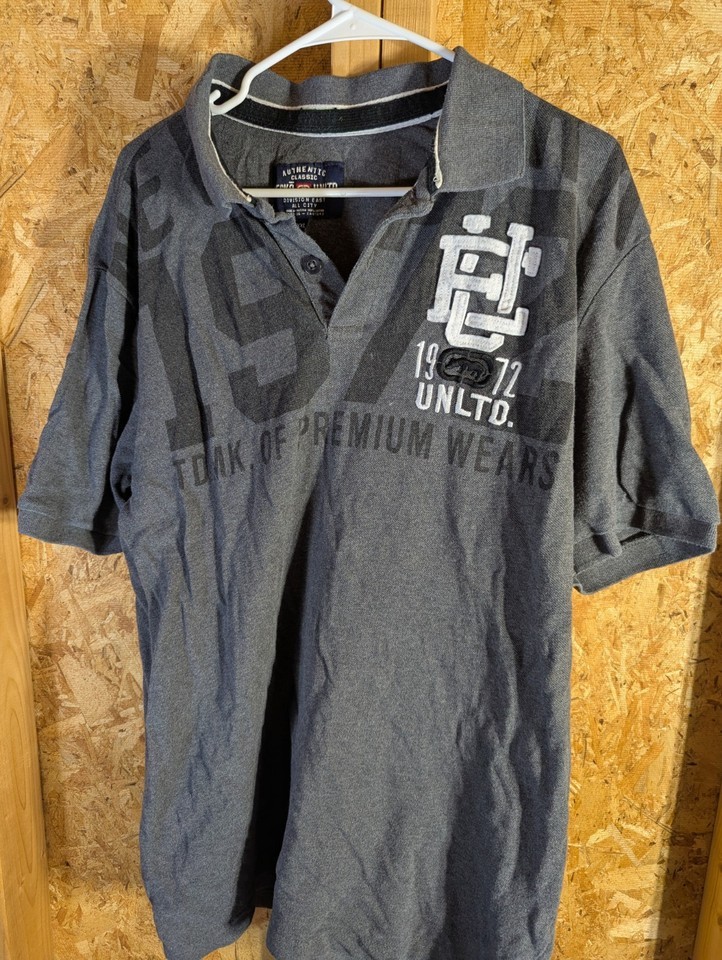 - ECKO UNLTD Polo Shirt Men Gray XXL 2XL Preppy Golf Casual Rhino 1972 Logo