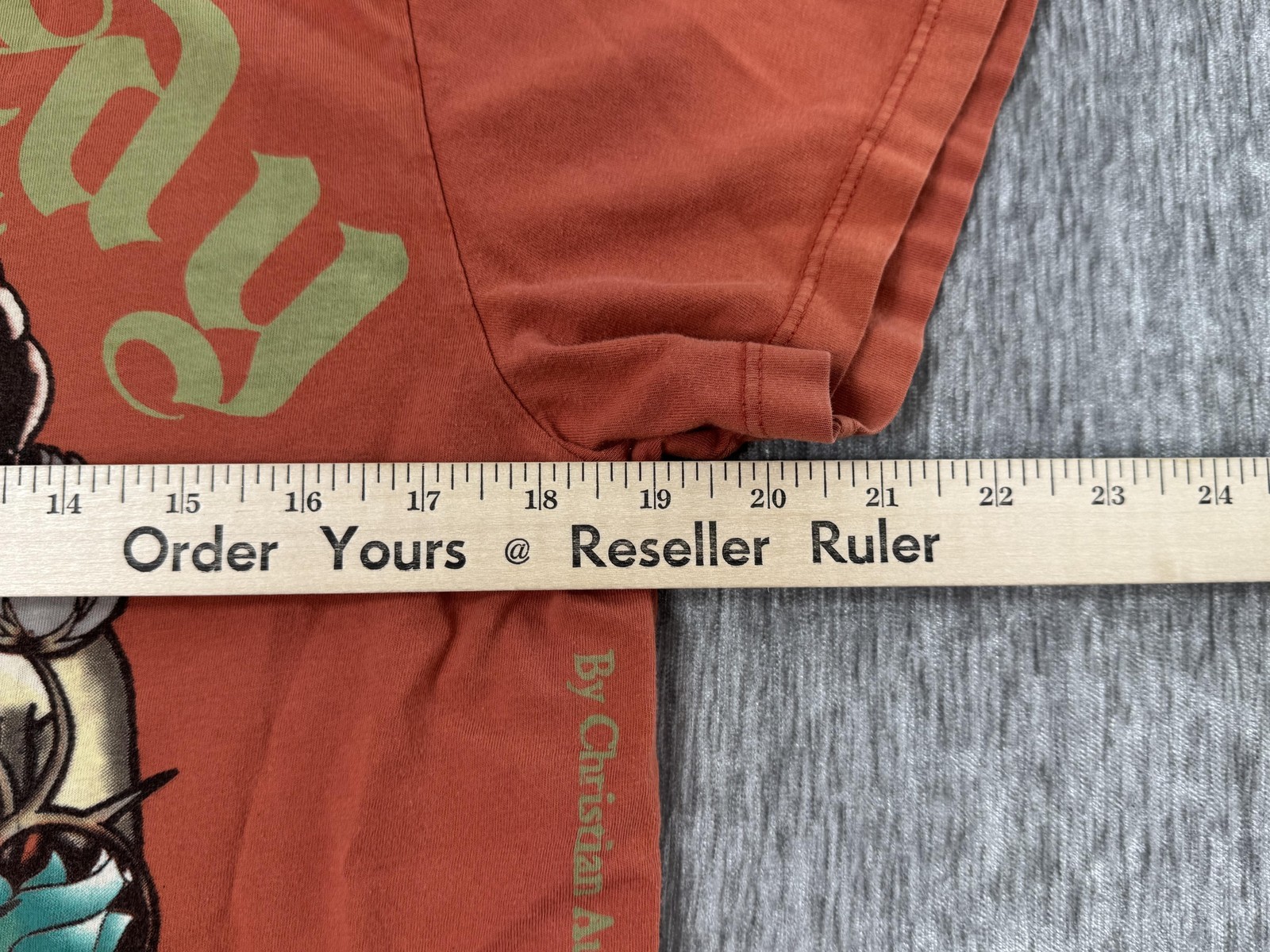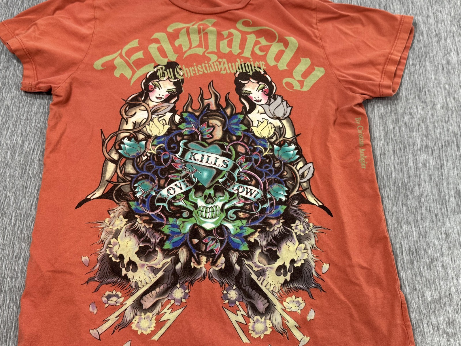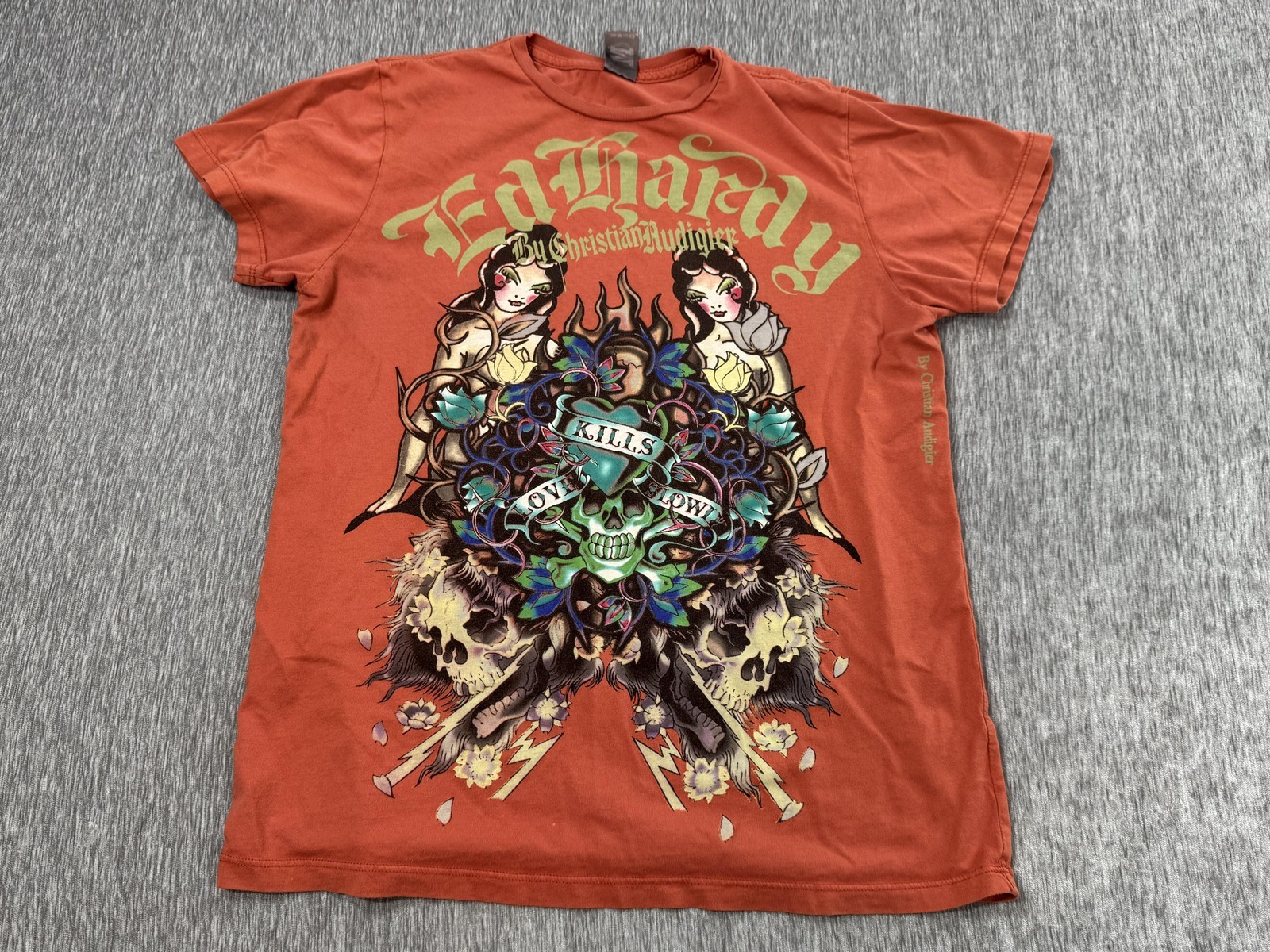 - Ed Hardy Shirt Mens Medium Orange Love Kills Slowly Tattoo Graphic y2k Grunge