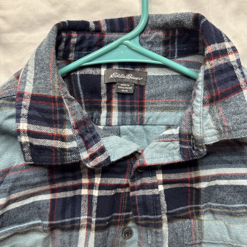 - Eddie Bauer 100% Cotton Bottom Down Long Sleeve Shirt Top (M) Medium Blue/Green