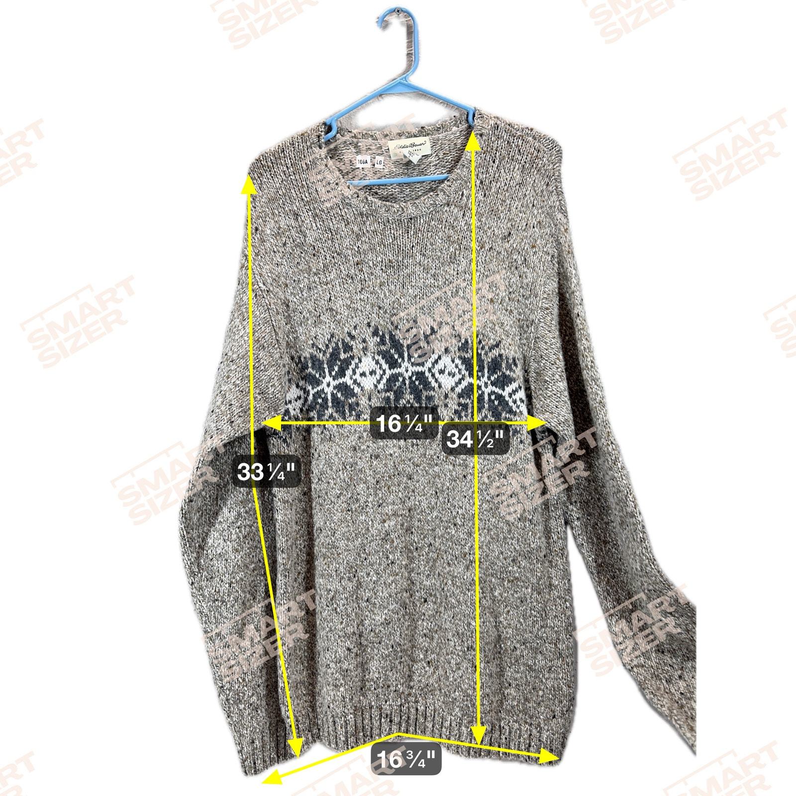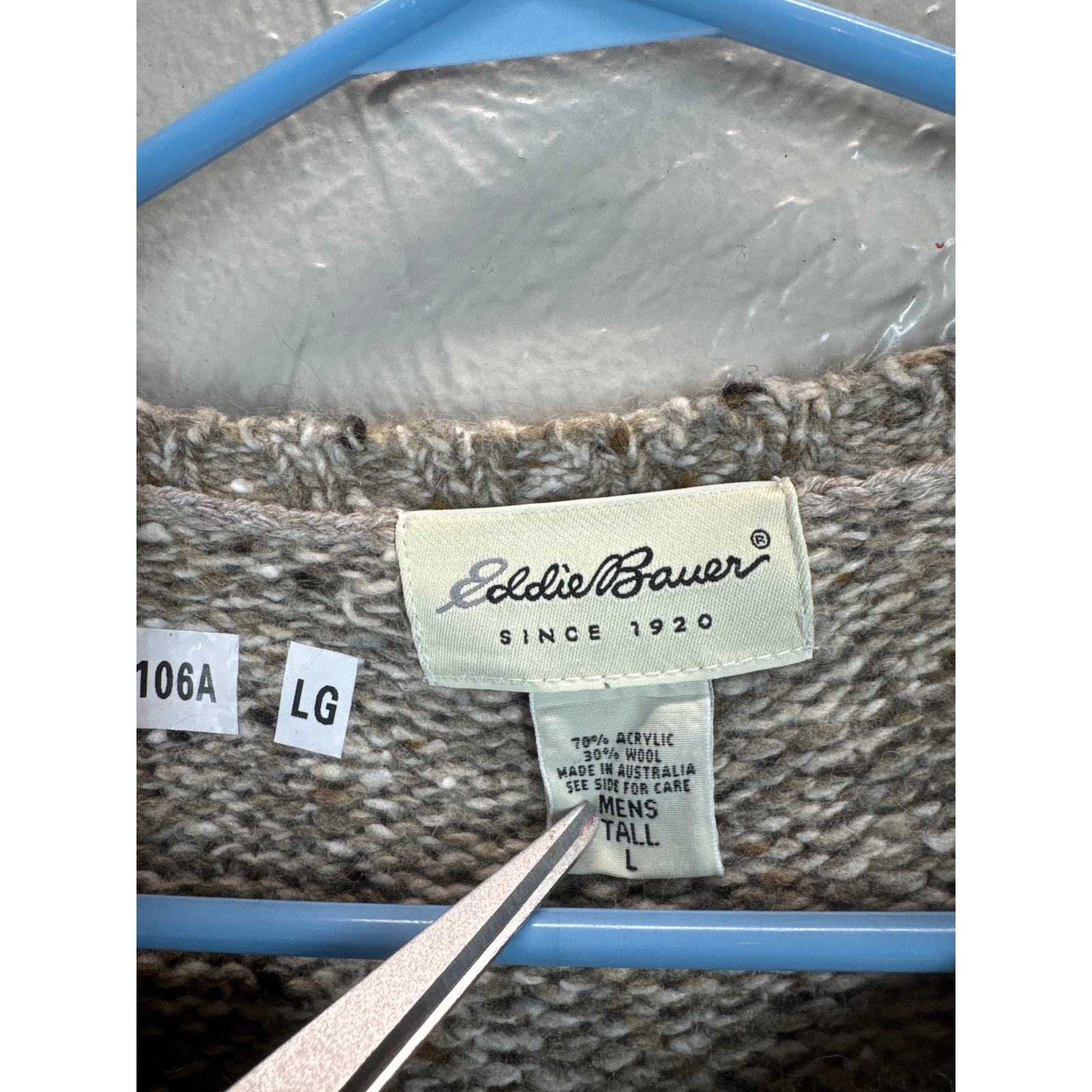 - Eddie Bauer Sweater Men's Tan Wool Blend Snowflakes Winter Pullover Tall Large