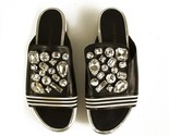 - Eddy Daniele Black Leather Bejeweled Slides Flatform Sandals Shoes size 40