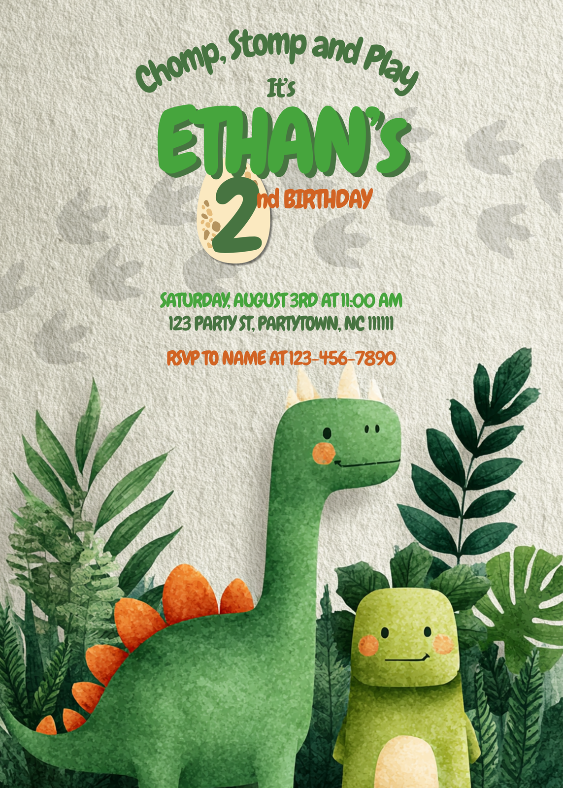 - Editable Dinosaur Birthday Invitation – Cute Kids Birthday Party Invite Template