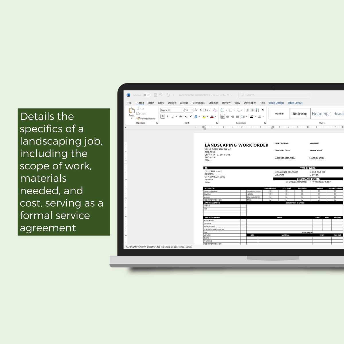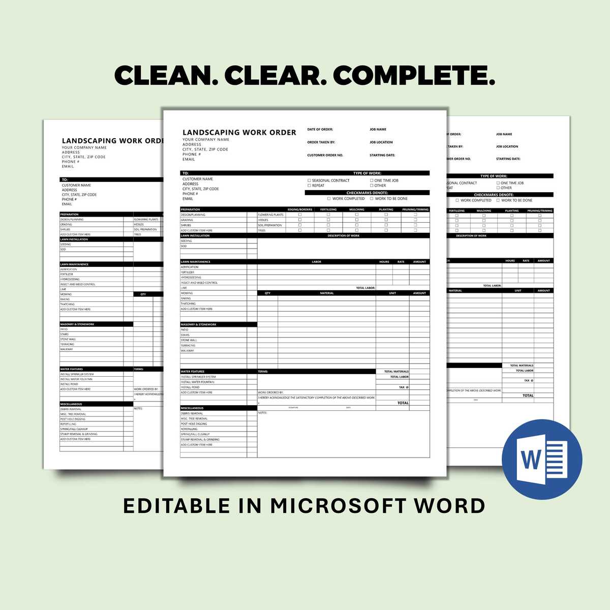 Make your paperwork as professional as your landscaping work — personalize it with your company name, contact info, and branding line!