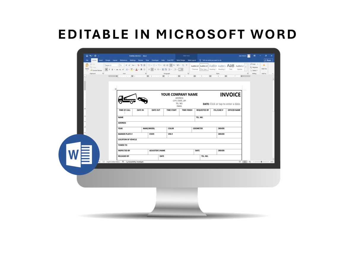 Streamline your auto repair or towing business with this professionally designed Towing Invoice Template. Sized at US Letter Size: 8.5" x 11" and fully editable in Microsoft Word, this digital download is perfect for creating clean, organized invoices that impress your clients and keep your records in check.