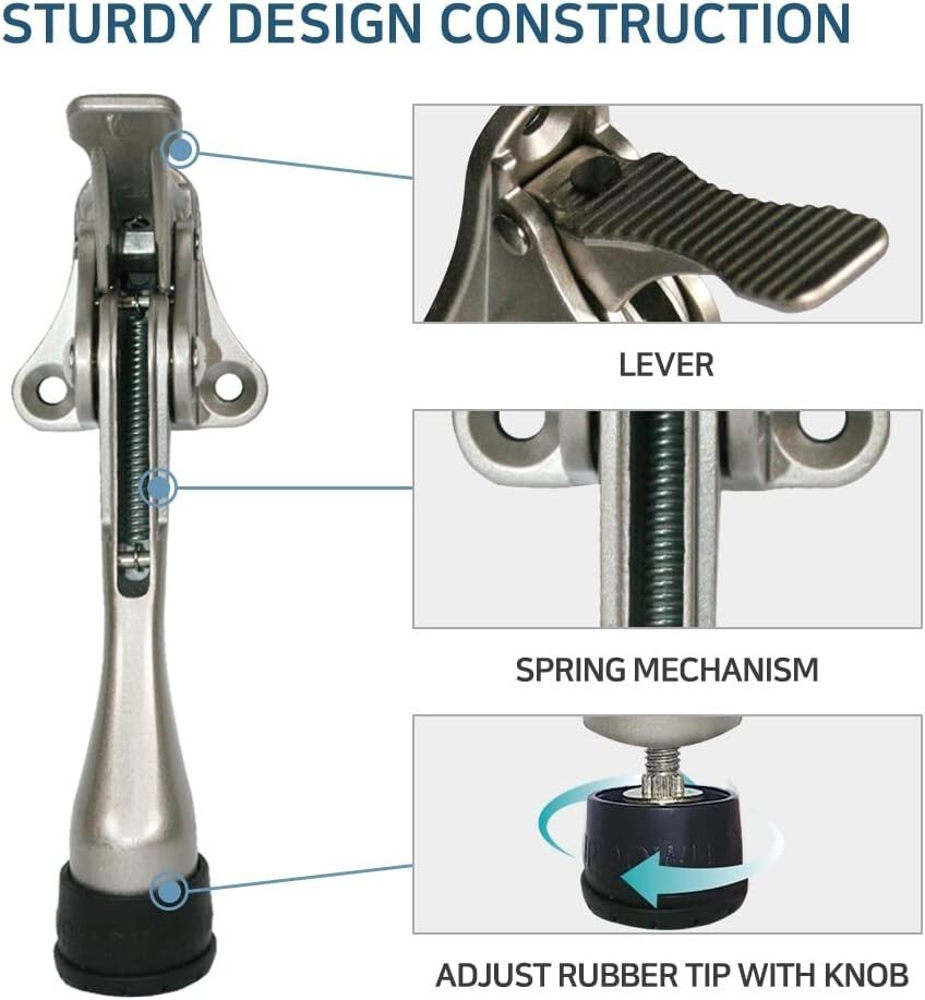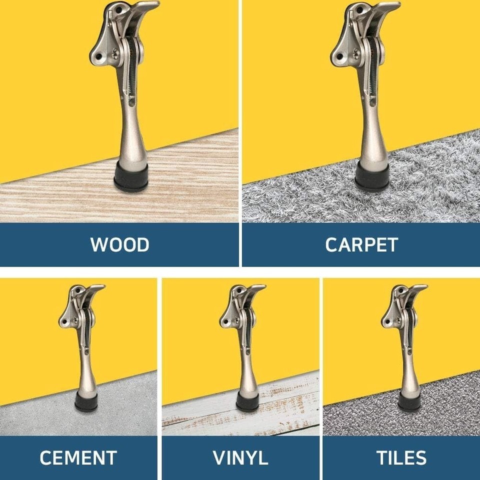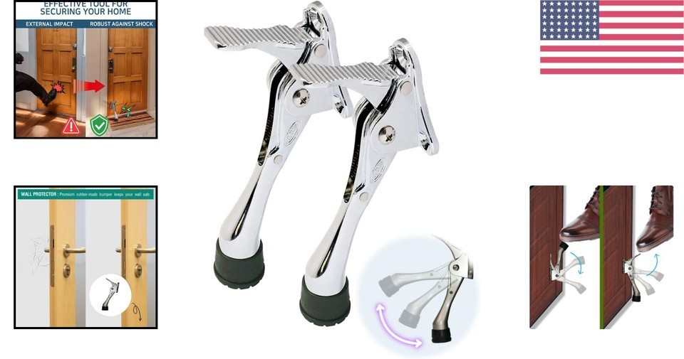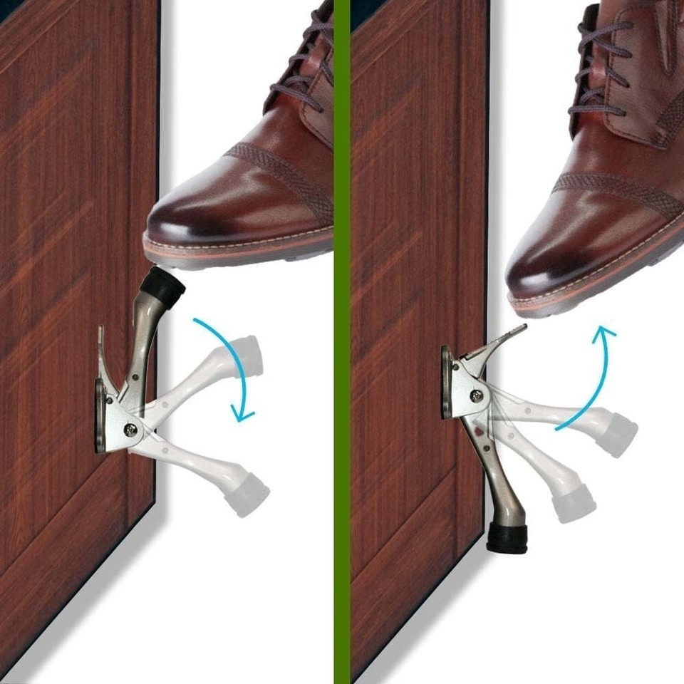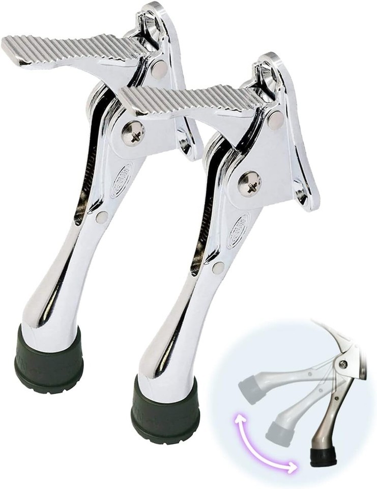 - Effortless Foot-Operated Door Stopper - Adjustable Chrome Stoppers Set of 2